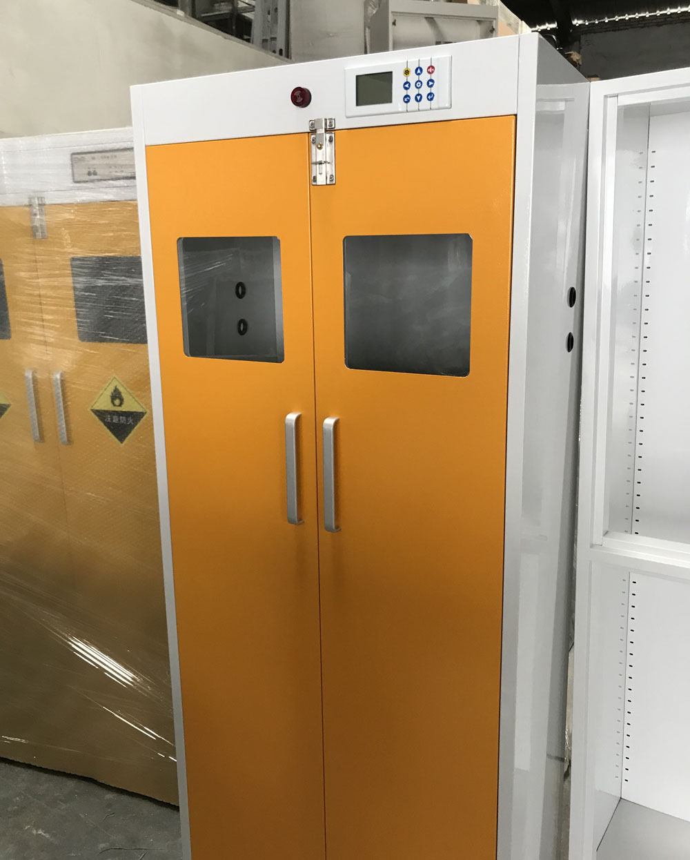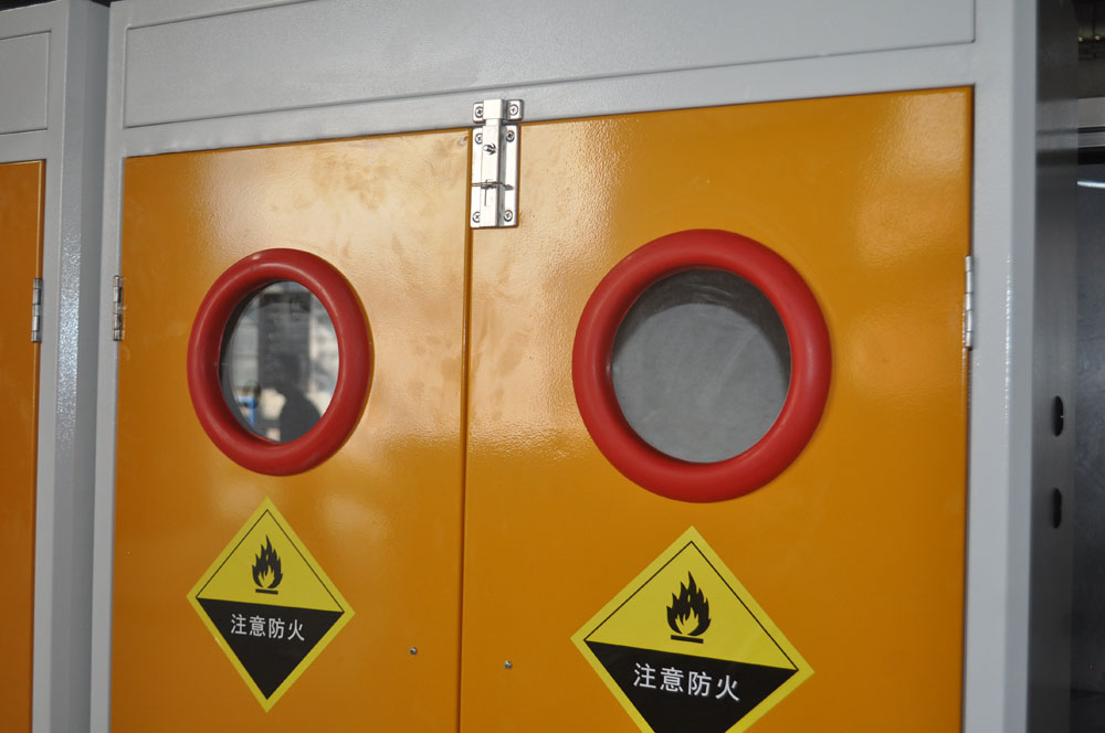 3、內(nèi)置雙不銹鋼卡圈(套鎖式)以固定氣瓶,翻推式墊板方便氣瓶推入;內(nèi)設排風口,便于泄漏的氣體排出,整體外形設計美觀大方;配有燃氣泄漏報警裝置,適合各種氣體氣瓶的存放。