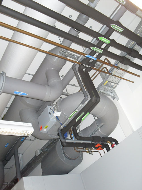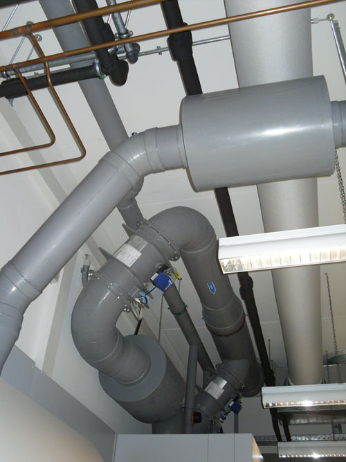 2、實(shí)驗(yàn)室暖通系統(tǒng):實(shí)驗(yàn)室排風(fēng)涉及實(shí)驗(yàn)人員的安全性和舒適性,必須嚴(yán)格控制好排風(fēng)效果、噪聲和節(jié)能等因素。通常,為避免實(shí)驗(yàn)室內(nèi)產(chǎn)生的毒害氣體交叉