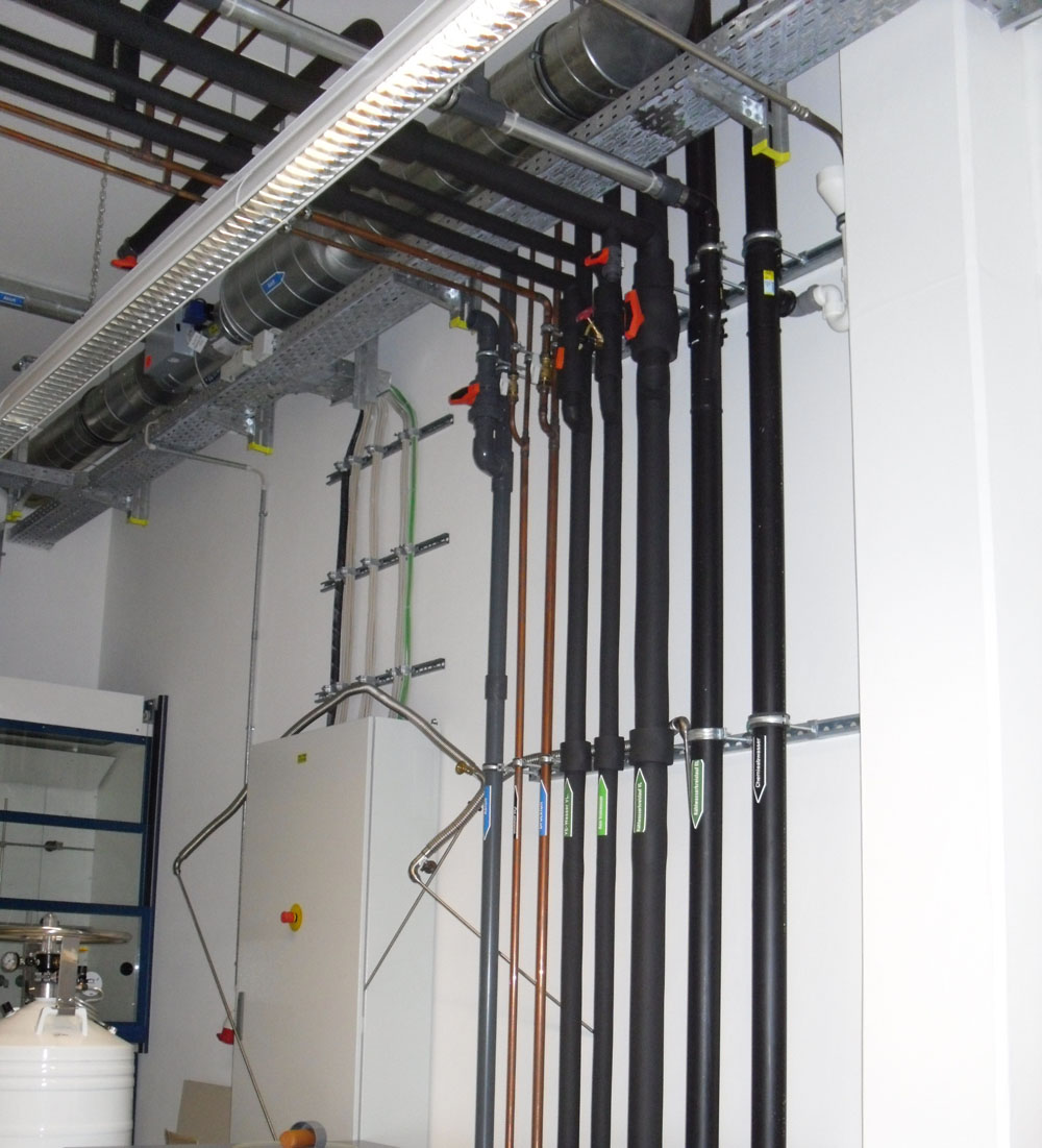 4、實(shí)驗(yàn)室供氣系統(tǒng):實(shí)驗(yàn)室供氣系統(tǒng)雖然投資份額相對(duì)較小,但對(duì)實(shí)驗(yàn)環(huán)境的安全性有重要影響。首先,氣瓶間必須采取的專業(yè)的通風(fēng)、防爆措施;其次,氣